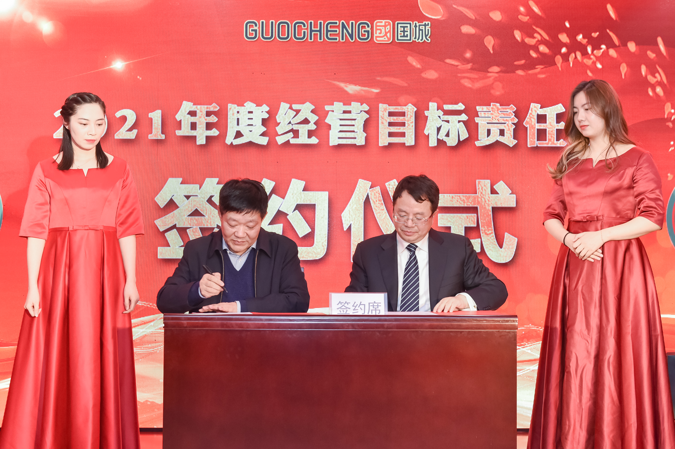 会上,董事长吴建元先生代表公司董事会和总经理李伍波先生代表经营层签署2021年度经营目标责任书。